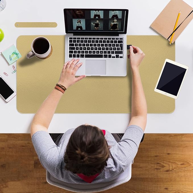 Boutilon Leather Desk Pad 24"x 14" Non-Slip Mouse Pad,Office Desk Mat,Waterprooft PU Leather Desk Blotter,Desk Pad Protector,Desk Writing Pad for Home Office Decor (S-Golden)