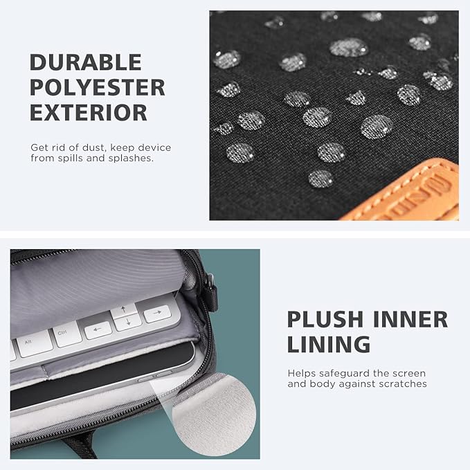 - 【Small Size & Large Capacity】The laptop shoulder bag has 1 main compartment (contains three compartments for tablets, keyboards, documents, etc.), 1 zippered accessory compartment (two hard drive compartment) and 2 open compartments on the handles (for small items such as passports, wallets, chargers, etc.).