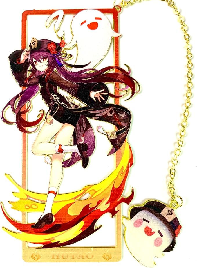 - Immerse yourself in the fiery world of Genshin Impact with these stunning HuTao brass bookmarks, featuring a Quadratic element design inspired by the popular anime game.