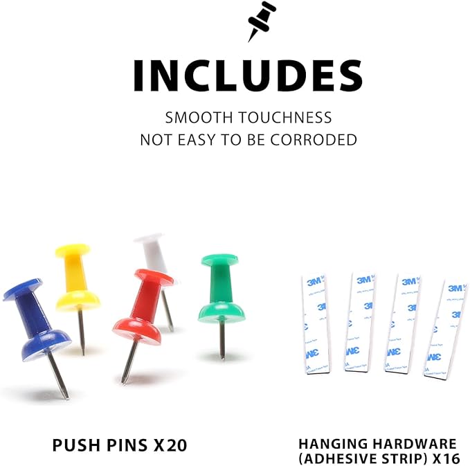 - ACCESSORIES INCLUDED – Comes with mounting hardware and push pins for quick posting For best results use Corksidol Accessories, sold separately Board measures 36" x 1"