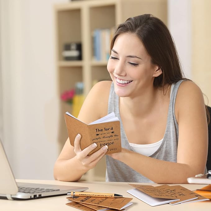 Funrous 32 Pcs Motivational Quote Pens Inspirational Notepads Mini Journal with Ballpoint Pen Small Notebooks Gift Set for Men Women Coworkers, Adult Party Favors Prizes Gift Bulk(Bible)
