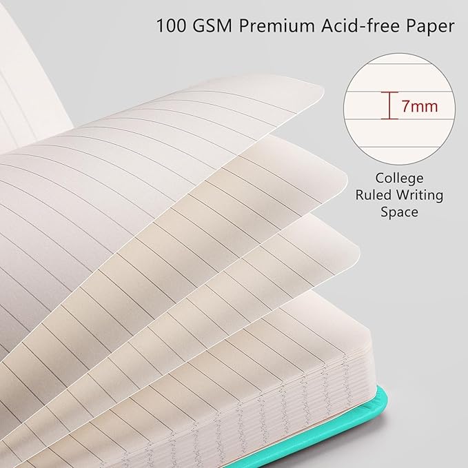 - RETTACY NOTEBOOK JOURNAL: RETTACY Notebook Journal comes in a A5 (5.7'' × 8.3') size, 160 Sheets/320 Numbered Pages, waterproof and smooth Leather Hardcover, 7 mm college ruled writing space, 100 GSM Acid-free Paper, Inner Pocket, Sticky Notes, 2 Ribbon Bookmarks, Elastic Closure Band