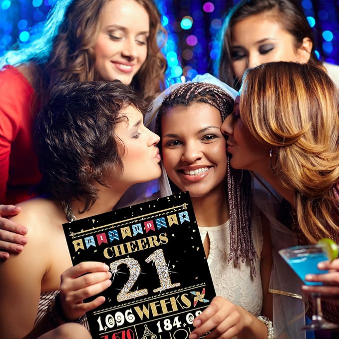 - 【Package Include】A 8 x 21 inches 21 year old birthday card and matching a gold envelope and transparent plastic bag to avoid damage to the greeting card. This special birthday card will be the talk of the party and make a great photo prop!
