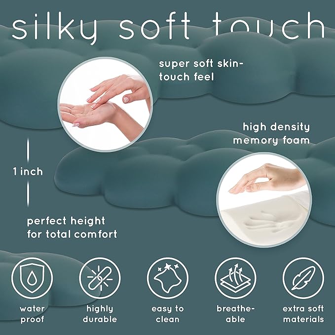 Qloud Cloud Wrist Rest Keyboard Wrist Rest for Computer Keyboard Pad, Cloud Keyboard Wrist Rest, Wrist Pad for Keyboard, Memory Foam, Non Slip Base, Comes with Mouse Pad - Dark Teal