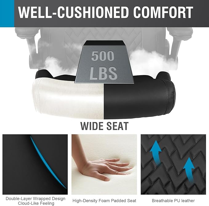 - 【EXECUTIVE CHAIR FOR MOST PEOPLE】Flysky office chair ergonomic desk chair adopts S-shaped backrest design. The big and tall backrest provides proper support for your waist and neck. The oversized seat cushion has super load-bearing capacity. Thin people can even sit cross-legged. Home office chair is very strong and stable, making it a office companion. The 500LBS weight capacity is basically suitable for most people, and the wide seat makes the sitting feeling more comfortable.