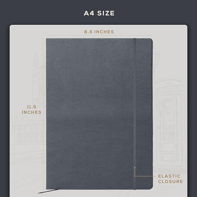 - Made For Your Convenience - The A4 wide ruled journal's 180° lay-flat binding, elastic closure, deep back pocket, and bookmark ribbon offer modern practicality and a premium experience.