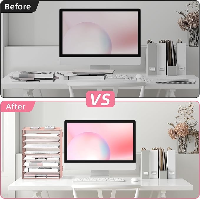 - [Perfect Paper Organizer] The 9-tier paper tray desk organizer has a large capacity for all your office supplies and accessories, such as: letters, paper, printing paper, books, folders, bills, magazines and so on. Keep your desk away from clutter and increase your productivity.