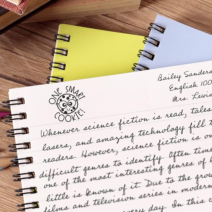 - Design: Stamp incorporates the phrase, "One Smart Cookie!" with an adorable happy cookie illustration. Give your stamp of approval for a nice job done! Stamp this cute cookie impression on homework, projects, school tests, and more. Perfect for teachers, daycare and homeschool.