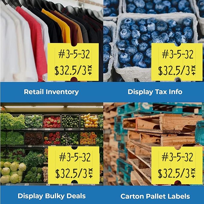 - Vibrant Fluorescent Yellow Labels: Vivid, eye-catching labels designed for high visibility pricing and date coding.
