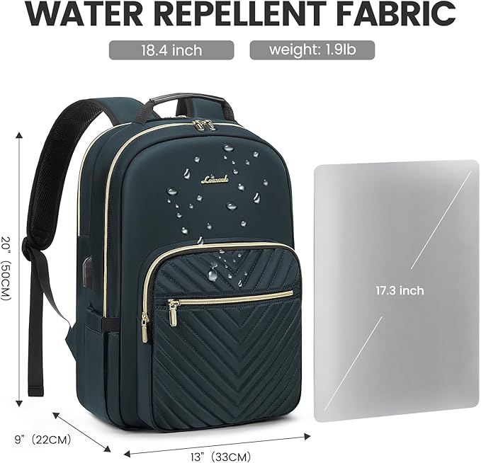 - 💯【Upgraded Laptop Backpack Women】: Classic V-shaped embroidery thread. Upgraded double LOVEVOOK no-slip metal zippers,water resistant Nylon fabric with polyester lining, ensures long lasting usage. Total of 4 compartments and 16 pockets for your computer,A4 folder,bottles,umbrellas,clothes,work supplies,college supplies and travel essentials.Dimensions: 13"L 20"H 9"D, Weight: 1.9lbs.