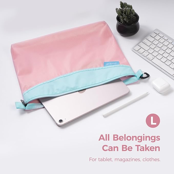 - Different Sizes to Choose: 3 sizes to suit all your storage. Large size for iPad Pro, paper documents, magazines, clothes, etc. Medium Size for notebook, passport, driving license, etc. Small size for mobile phone, cables, car key, ID card, stationery, etc. It can store first-aid medicine as first aid kit outdoors