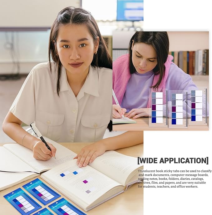 - [WIDE APPLICATION]Translucent book sticky tabs can be used to classify and mark documents, computer message boards, reading notes, books, folders, diaries, catalogs, archives, files, and papers, and are very suitable for students, teachers, and office workers.