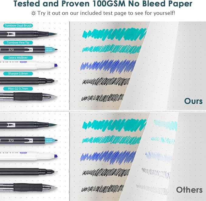 - 【Thick Paper for Writing Without Limits】Large B5 hardcover notebook (7.6"x 10"/193mm x 254mm), total 320 pages, includes 312 numbered pages(156 sheets). Each page includes 1887 dots with 5mm spacing: X37*Y51. Our INNOVATIVE PAPER TECHNOLOGY on 100GSM thick paper ensures a perfect canvas for your ideas - no bleed, no ghosting, as confirmed by tests with various pens commonly used in bullet journaling.