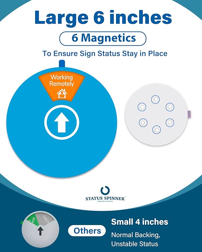 - 【EASY TO ROTATE】 - Simply spin the knob to rotate between status. Each status has a small magnet to helps securing the status in place. (NOTE: The sign’s magnet is intended for stabilizing the status only, and cannot stick directly to metal)