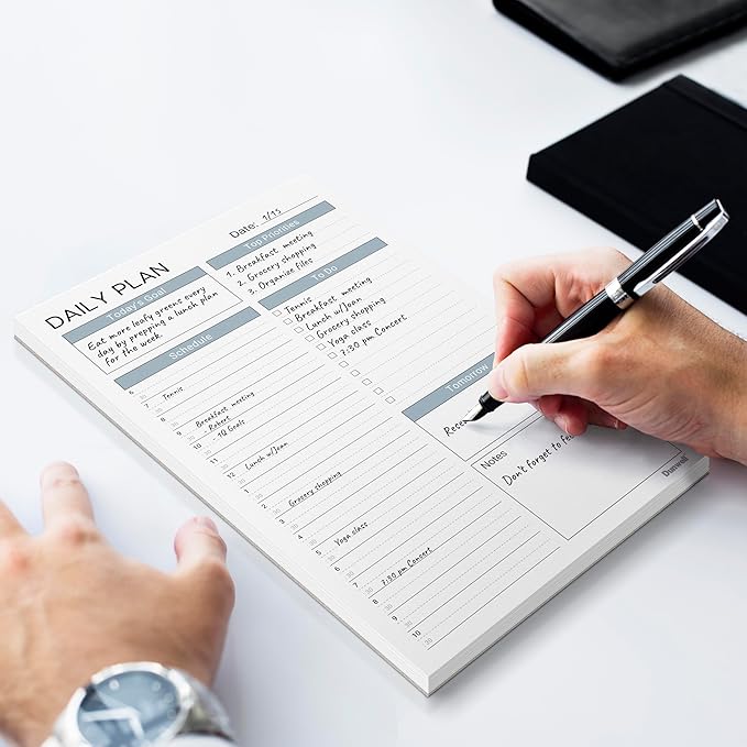 - 5.5x8.5” Daily Planning Notepad: 2-Pack, Each with 54 tear-off sheets. Daily desktop notepad for organizing your daily schedule, appointment, tasks and to do list. Portable, Take it anywhere.