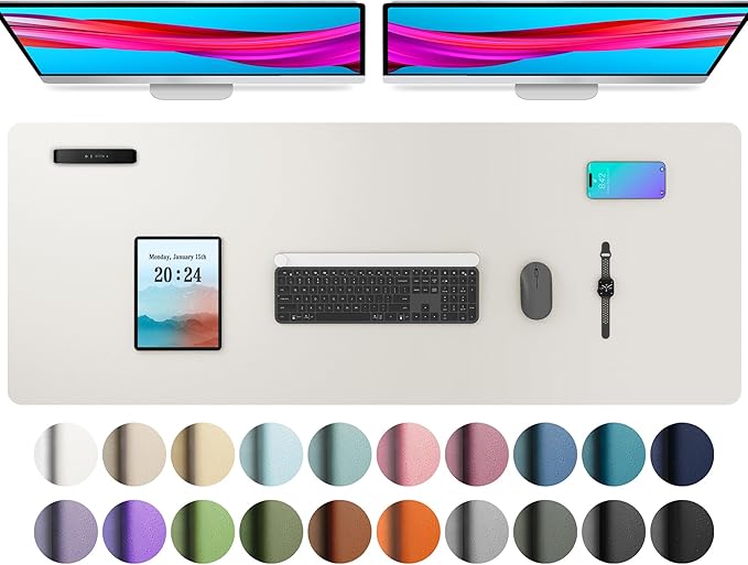 Aothia Leather Desk Pad Protector, Mouse Pad,Office Desk Mat, Non-Slip PU Leather Desk Blotter, Laptop Desk Pad, Waterproof Desk Writing Pad for Office and Home (48"x17", Off-White)