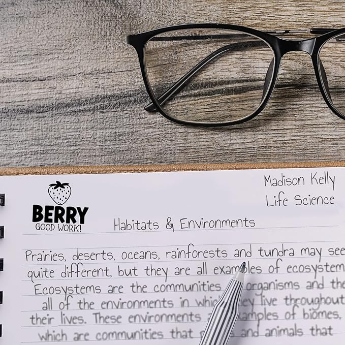- Design: Stamp incorporates the phrase, "Berry Good Work!" below an adorable berry illustration. Give your stamp of approval for a nice job done! Stamp this cute cookie impression on homework, projects, school tests, and more. Perfect for teachers, daycare and homeschool.