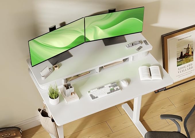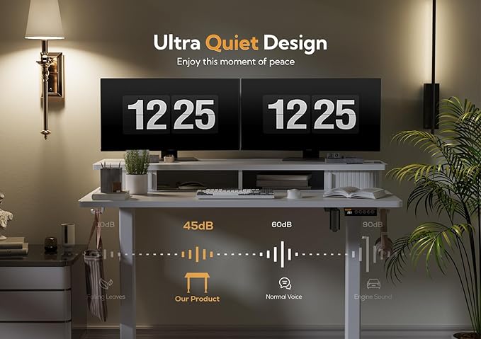 - Smooth Height Adjustment: Freely select adjustable standing desk height, from 28.35" to 46.46". Save your favorite three settings and smoothly switch the electric standing desk between them.