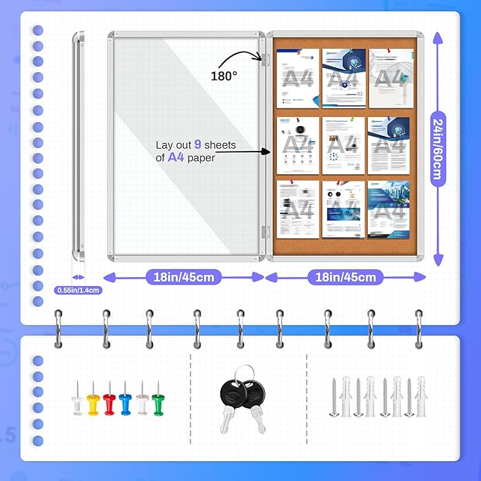 - 【SECURE AND PROTECTED NOTICE BOARD】Enclosed Bulletin Board keep important information safe from the elements, theft, or tampering with lockable acrylic doors and key mechanisms.Save valuable wall space and maintain a clean and organized appearance in offices, schools, or community centers.