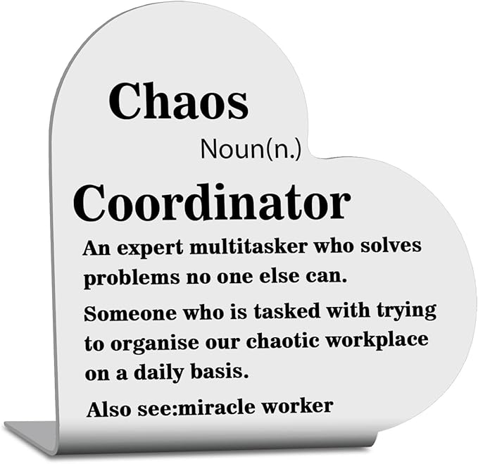 - Lovely design: This desktop sign is designed in a heart shape. Printed with a funny definition of the office phrase.It will add a playful and stylish element to your office.