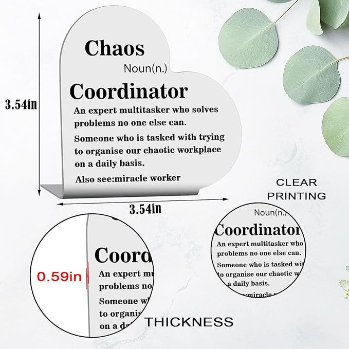 - Funny office decor: The heart-shaped stainless steel tabletop sign is the perfect addition to your office space with its intriguing definitions of office-related words.Place it on your desk,it brings a touch of humor and charm to your workspace.