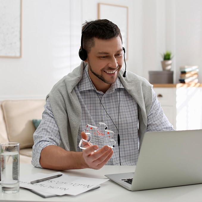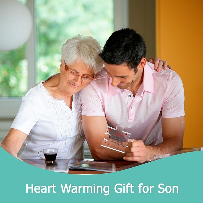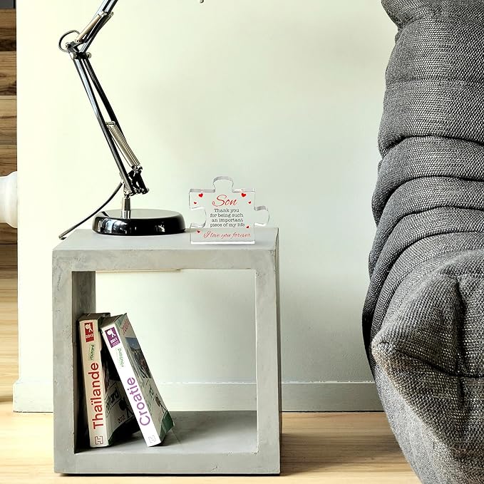 VELENTI Gifts for Son - Engraved Acrylic Block Puzzle Son Gift 3.35 x 2.76 inch - Son Thank You Gift from Mom and Dad - Birthday Mother Son, Father Son Gift - Christmas, Graduation Gift for Men, Boys