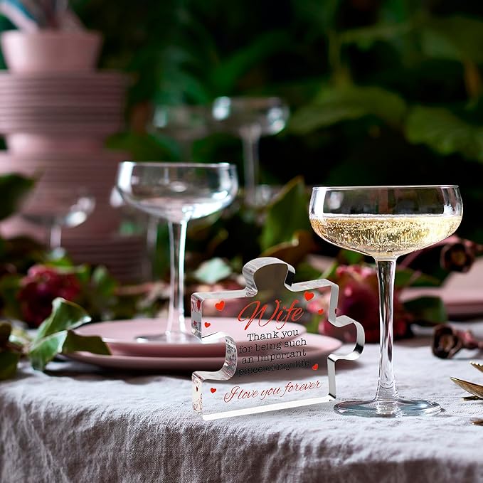 VELENTI Valentine's Gifts for Wife - Engraved Acrylic Block Puzzle Wife Gift 3.35 x 2.76 inch - Cute Wife Gifts from Husband - Novelty Birthday Paperweights, Christmas, Cool for Women