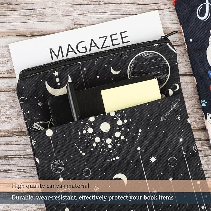 - Extra Organiser - The book cover is made of canvas and is easily hand and machine washable for repeated use. The book cover also has an additional organizer pocket, perfect for storing notebooks, small diaries, stationery, and even some small decorative accessories!