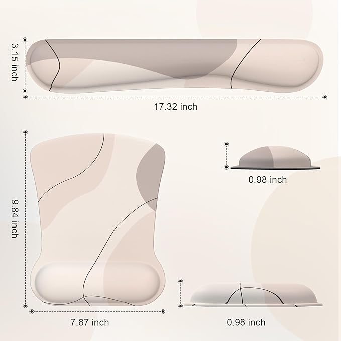 - Ergonomic Design: The curved design of these two wrist rests fits perfectly on the wrist. Provide soft support to relieve the pressure, fatigue and pain of your wrist
