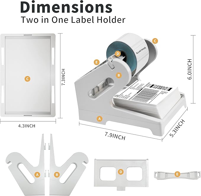 Guermok Thermal Shipping Label Holder for Rolls & Fan-Fold, Fragile Stickers for Shipping, Label Stand Desktop Printer Holder-Home Office Accessory- Sticker Dispenser for Holographic Vinyl