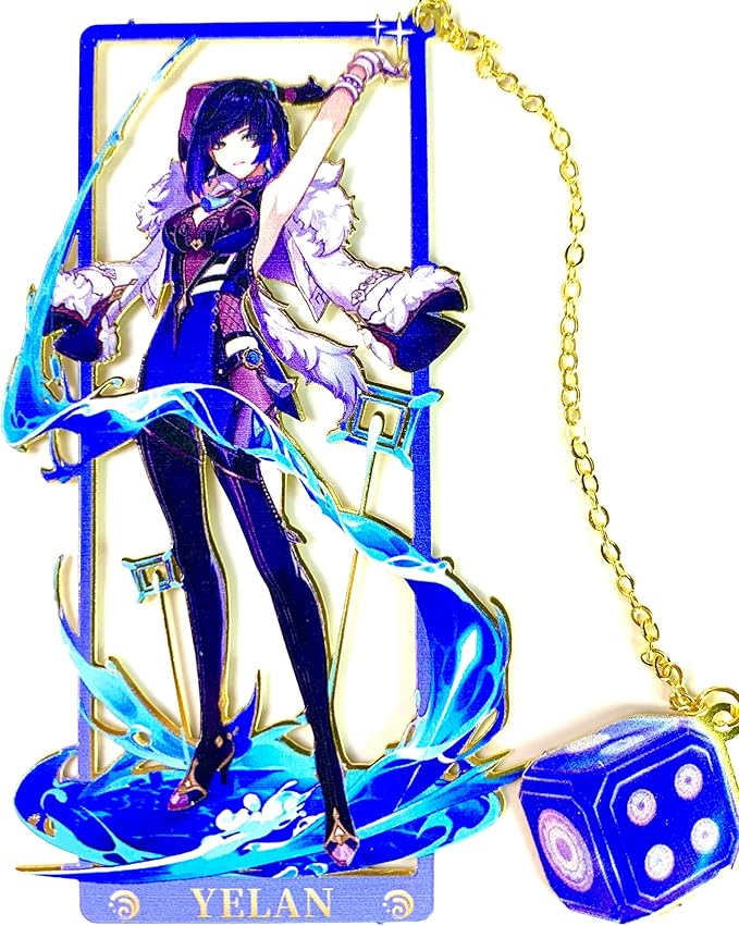 - Immerse yourself in the captivating world of Genshin Impact with our Yelan brass bookmarks, designed for fans of this popular anime game