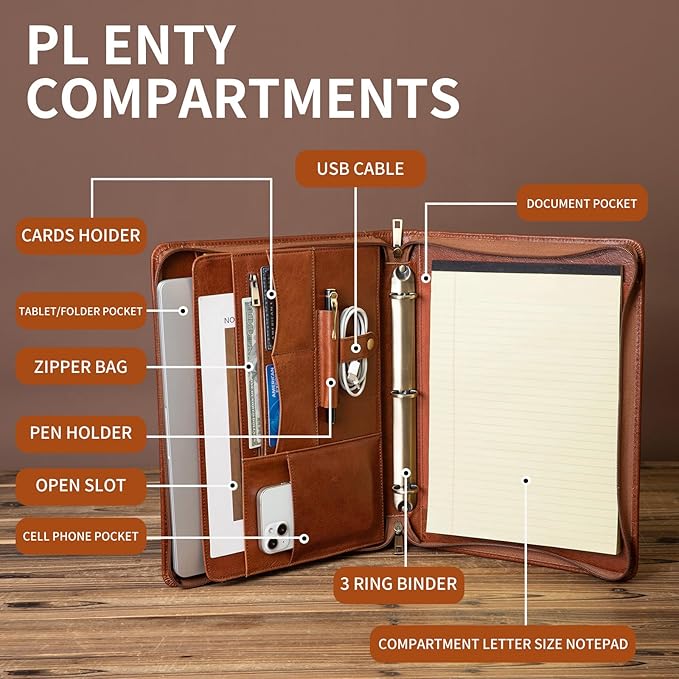 - GIVE THE PROFESSIONAL FIRST EXPRESSION – Whether you’re going for a job interview or a professional business trip, you were going to need this exquisitely made, high-class, timelessly designed professional business portfolio with handle. Our leather padfolio helps you create a reliable, tasteful and professional image which greatly promotes your business.