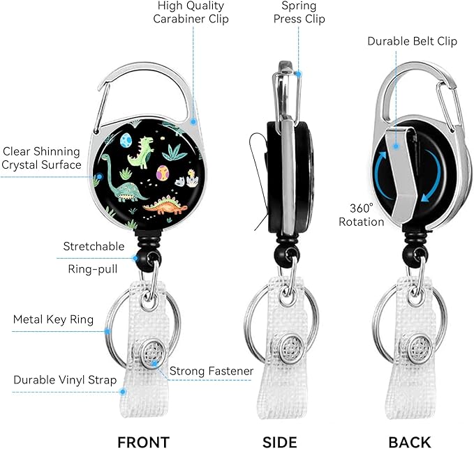 Cute Dinosaur Badge Holder with Retractable Reel and Breakaway Lanyard,Badge Clips Retractable Heavy Duty Badge Reel,Keychain,ID Holder with Breakaway Lanyard for School Nurse Office Teen