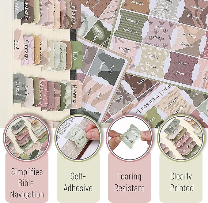 Mr. Pen- Spanish Bible Tabs, 75 Tabs, Boho Theme, Laminated Bible Tabs for Women and Men, Bible Tabs in Spanish, Bible Tabs Spanish, Bible Tabs for Study Bible, Bible Index Tabs, Mr Pen Bible Tabs