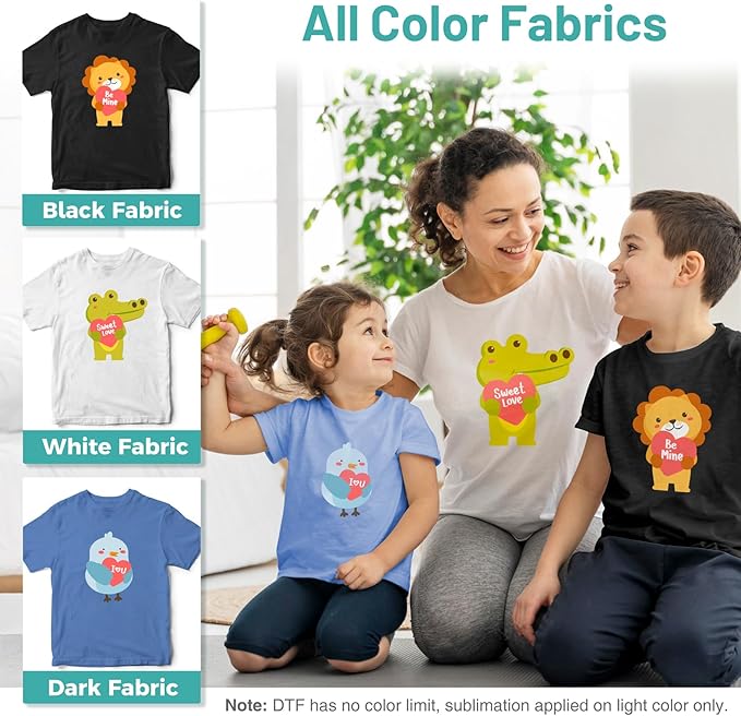 - SUBLIMATION vs DTF SUBLIMATION HACK: Regular sublimation can only transfer onto polyester fabric. But the DTF sublimation hack is like magic. It can apply not only to polyester but also to 100% cotton, jeans, leathers, blends, etc., meeting your daily project needs