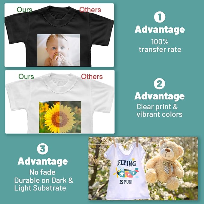 - WHY CHOOSE KASYU DTF PAPER: Its matte printing side has special treatment, ensuring best adhesion to DTF ink for 100% transfer rate and a soft, smooth feel. Made of electrostatic PET, it minimizes powder residue, easing the powder shaking process