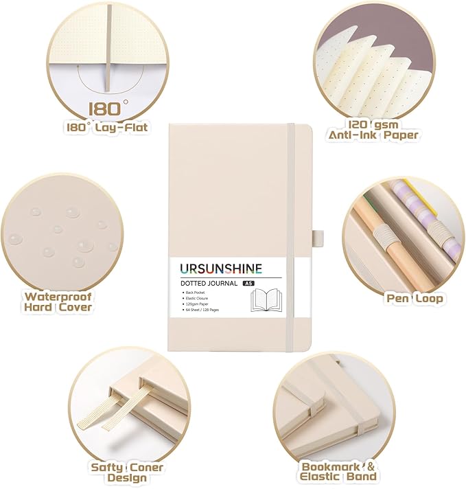 - LAY-FLAT 180° DESIGN - This classic dot journal is designed to lay flat, which makes you easy to write and take notes efficiently. And firm thread-bound ensures pages don't get peeled away from the cover. This notebook provide you a high quality writing experience.