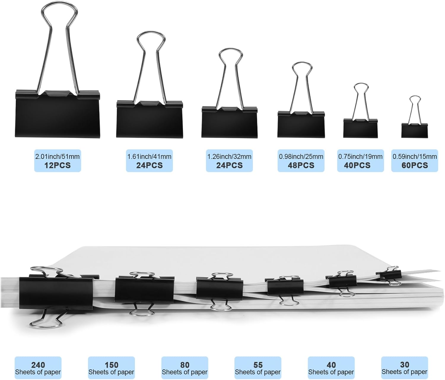 - Package Includes: 208 PCS high quality black binder clips of 6 assorted sizes, in 6 transparent boxes, plastic container convenient for store and fetch, which can meet your different using needs.