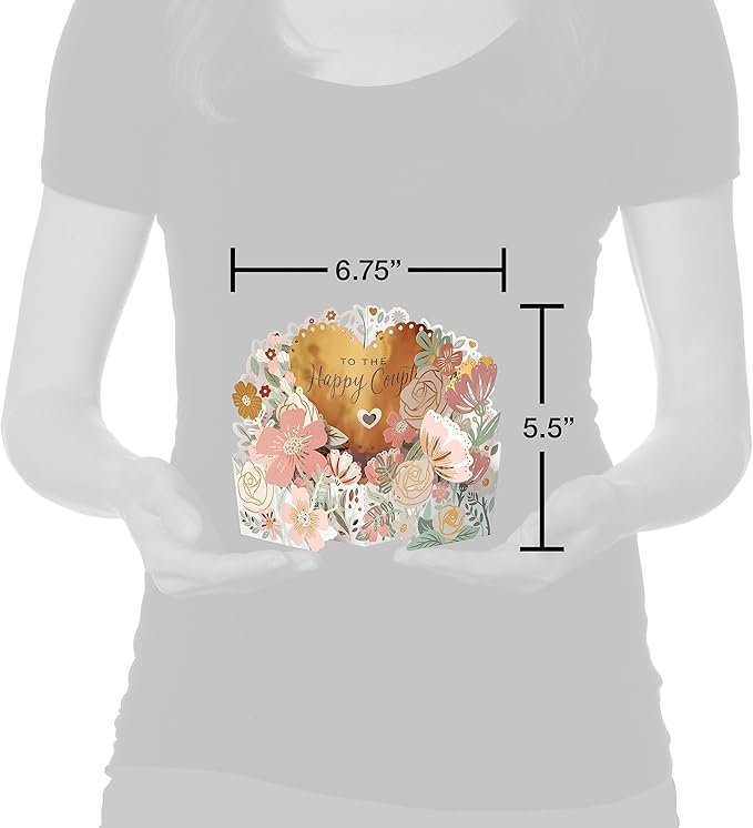 - This decorative romantic Pop-up card for couple features a gold foil heart surrounded by floral accents perfect for a wedding, engagement, or anniversary