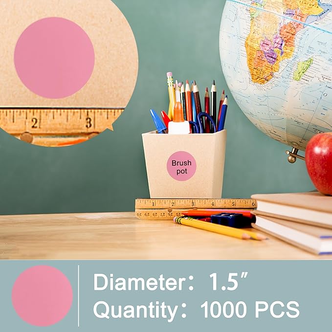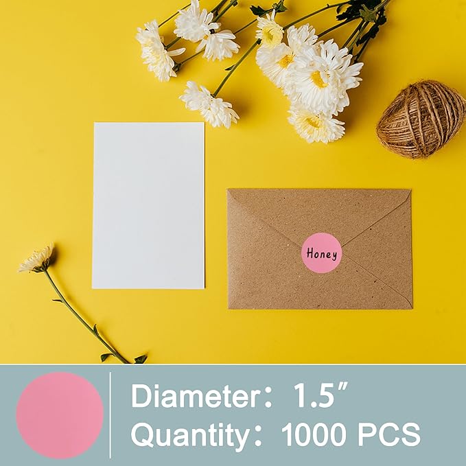 Hybsk 1.5 inch Circle Color Direct Thermal Stickers Shipping Labels for Barcodes,Name Tag,DIY Logo Design,Inventory– Compatible with Zebra,Rollo,Munbyn,and More-1000 pcs (1.5 inch,Pink)