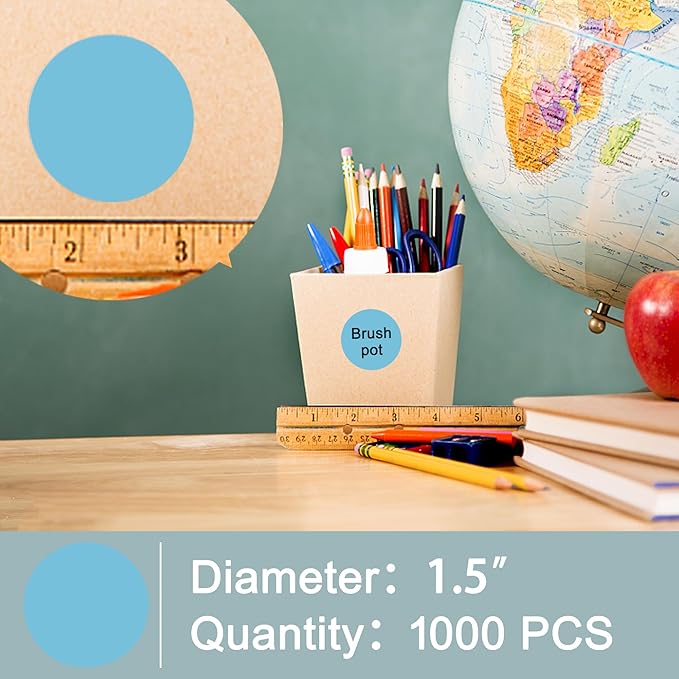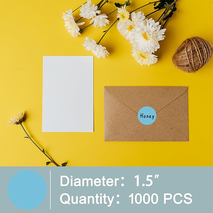 Hybsk 1.5 inch Circle Color Direct Thermal Stickers Shipping Labels for Barcodes,Name Tag,DIY Logo Design,Inventory– Compatible with Zebra,Rollo,Munbyn,and More-1000 pcs (1.5 inch,Light Blue)