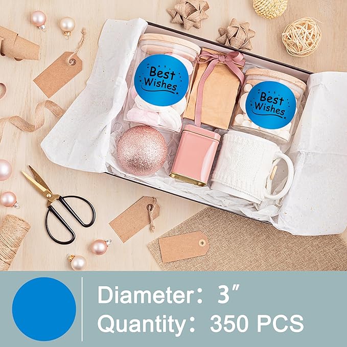 Hybsk 3 inch Circle Color Direct Thermal Stickers Shipping Labels for Barcodes,Name Tag,DIY Logo Design,QR Code,Inventory– Compatible with Zebra,Rollo,Munbyn,and More-350 pcs (3 inch,Blue)