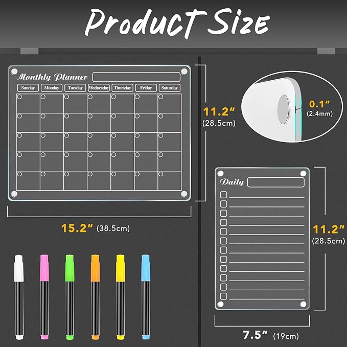 - 【Magnetic Dry Erase Board Set】The material is transparent acrylic.Our package contains 4Pcs acrylic fridge magnetic dry erase board, a monthly calendar, a weekly planner, a dry erase calendar and a whiteboard, with extra 6 markers.The set of acrylic refrigerator magnetic calendar is a designed for you to plan your daily life, the acrylic magnetic set allows you to write more, you can plan and organize your daily life more carefully
