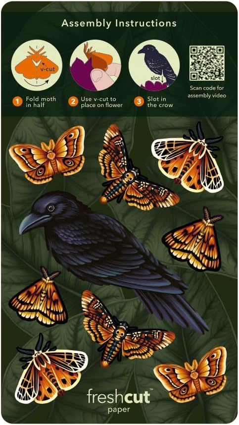 - REALISTIC PAPER FLOWERS are the perfect accent to home decor. Deep purple paper flowers are adorned with moths and a raven, adding a spooky touch to your autumn centerpiece or Halloween decorations.