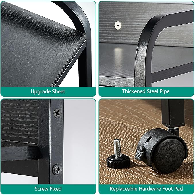 4 Tier Printer Stand with Wheels Printer Table, Multipurpose Office and Home Storage Rack, Removable and Fixed Printer Stand for Fax Machine, Scanner, Roller Cart Stand Black