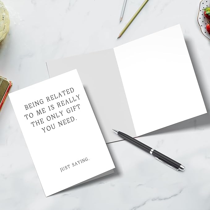 - Funny Birthday Card-- "Being Related to Me is Really the Only Gift You Need, Just Saying" express your best wishes to your brother sister cousin or family member