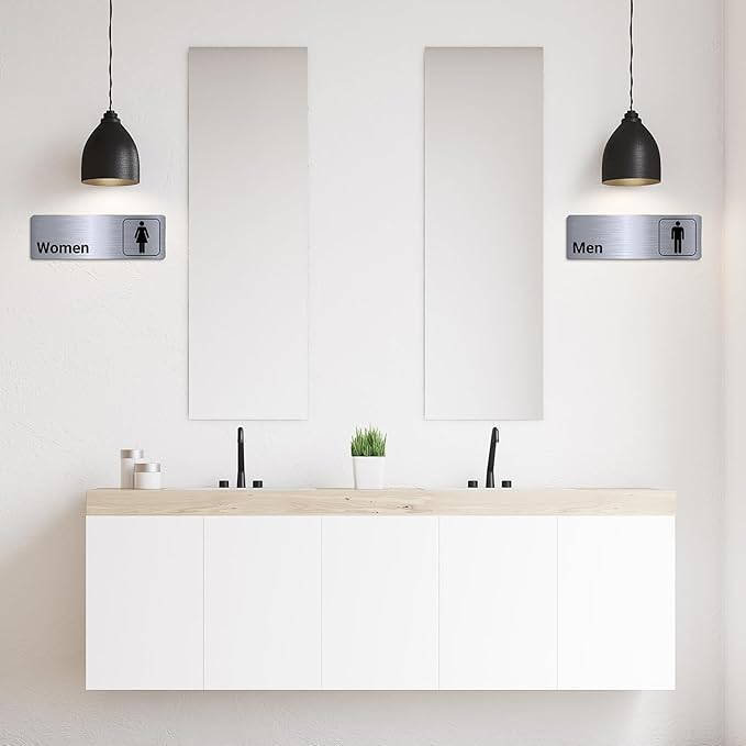 Brushed Aluminum Restroom Signs, Men and Women Modern Restroom Sign, 9 x 3 Inch Bathroom Door Signage Decor for Offices Business Restaurants (4 Pcs)