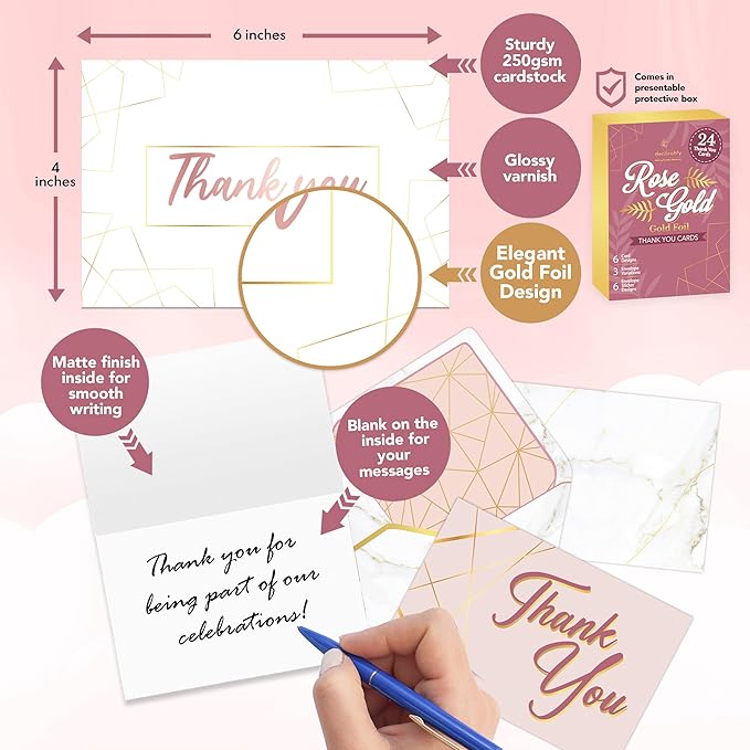 - WE JUST WANNA MAKE YOU SMILE - Your happiness is our unwavering priority. If you ever find yourself less than delighted with your rose gold thank you cards, simply reach out, and it will be made right. Buy with confidence and don't miss out on these well-designed thank you cards!