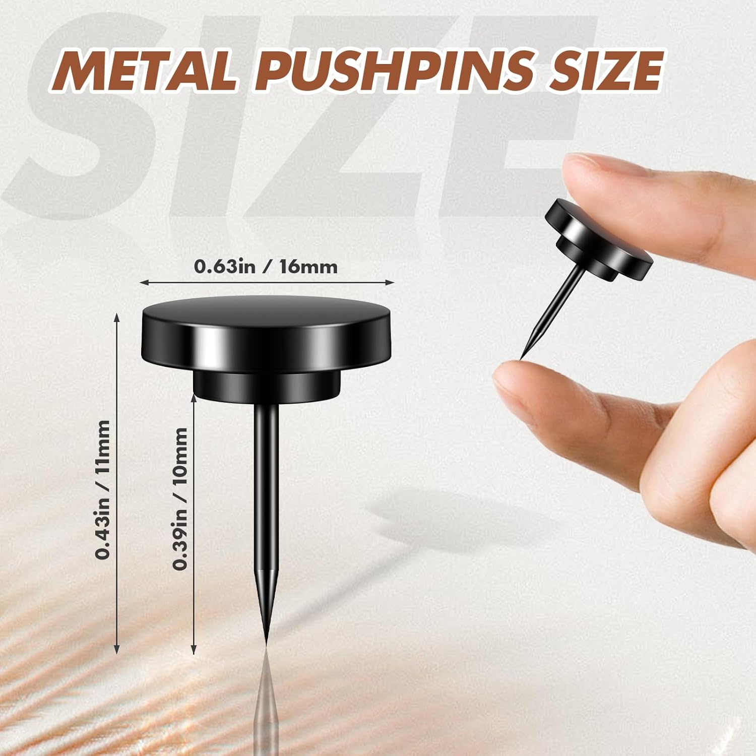 - 【Easy Installation】In the shape of ordinary push pins with black color, these metal push pins are easy to install without causing damage to your walls. Simply tap them in with minimal effort using a picture hanging tool, and you're ready to showcase your favorite wall art or decorations, these metal push pins and picture hanging hooks are perfect for heavy-duty use.