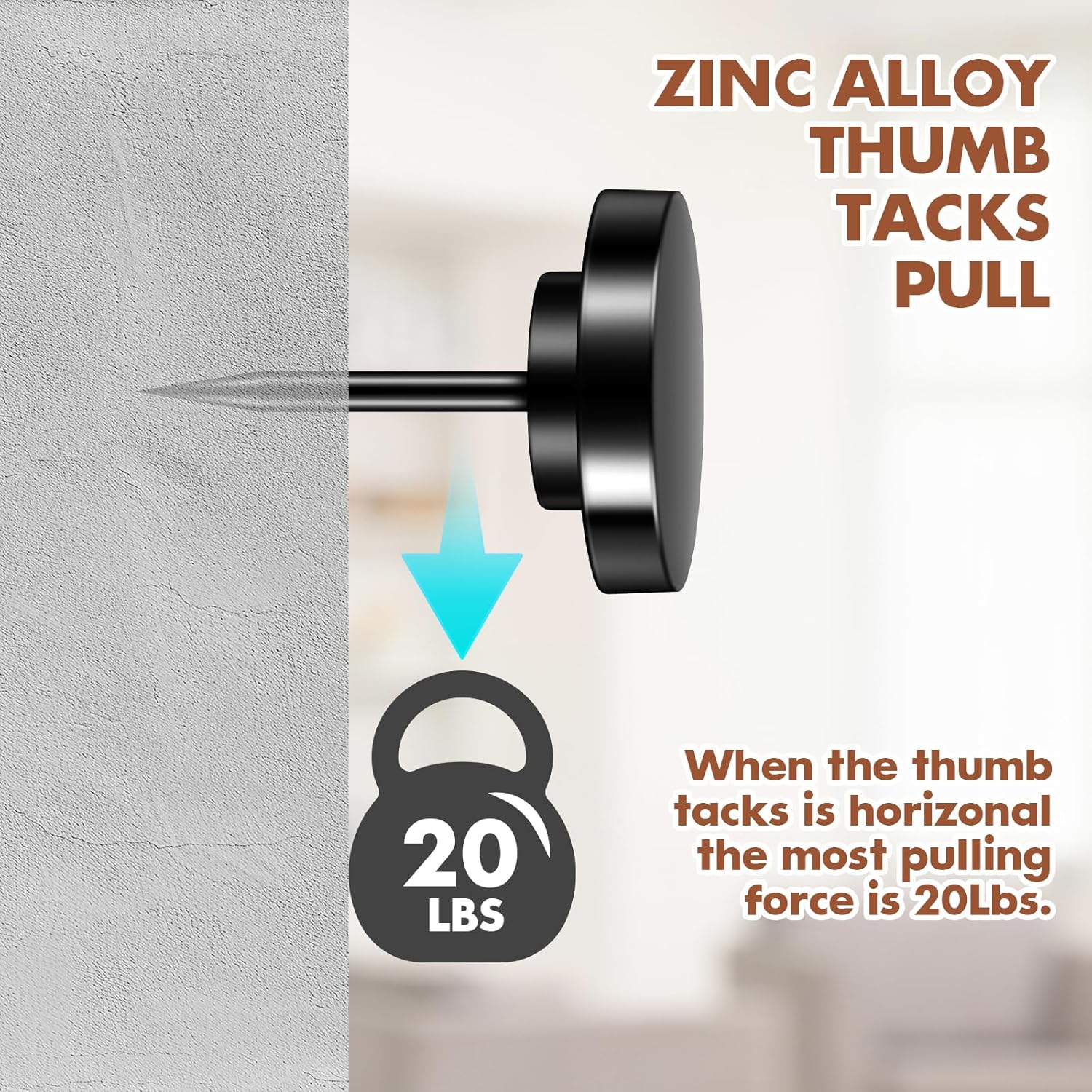 - 【Durable Construction】The tacs measure approx. 0.6 inch in total length, and approx. 0.4 inch in diameter and they are made of zinc alloy, not easy to rust, are hard to deform, break, or fall off, and can hold up to 20 lbs. Lightweight but toughly made for daily use, great for both residential and commercial settings.